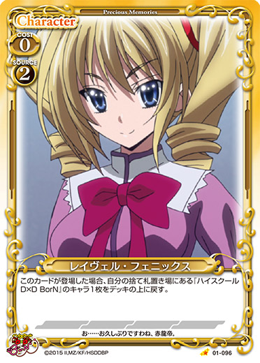 | このカードが登場した場合、自分の捨て札置き場にある『ハイスクールD×D BorN』のキャラ1枚をデッキの上に戻す。 | ||