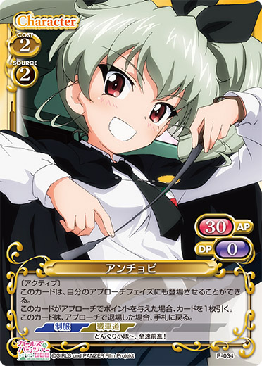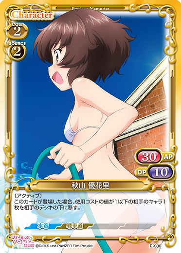 | 〔アクティブ〕このカードが登場した場合、使用コストの値が1以下の相手のキャラ1枚を相手のデッキの下に移す。 | ||