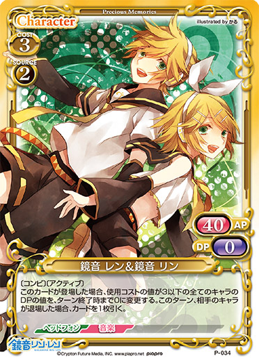 | 〔コンビ〕〔アクティブ〕このカードが登場した場合、使用コストの値が3以下の全てのキャラのDPの値を、ターン終了時まで0に変更する。このターン、相手のキャラが退場した場合、カードを1枚引く。 | ||