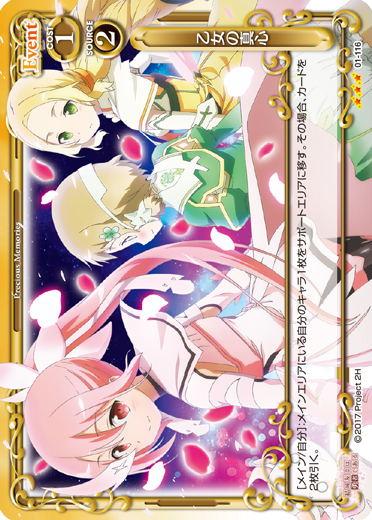 | [メイン/自分]:サポートエリアにいる自分のキャラ1枚をメインエリアに移す。 | ||