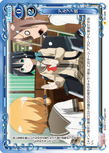 | [メイン/相手]:使用コストの値が0の相手のキャラ1枚は、このターン、アプローチに参加できない。 | ||