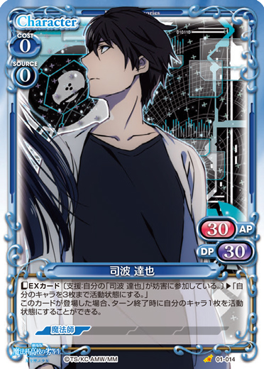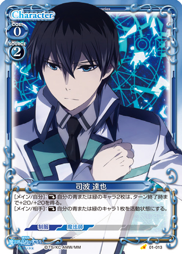 | 〔EXカード〕〔支援:自分の「司波 達也」が妨害に参加している。〕>「自分のキャラを3枚まで活動状態にする。」このカードが登場した場合、ターン終了時に自分のキャラ1枚を活動状態にすることができる。 | ||