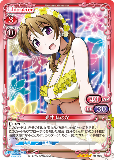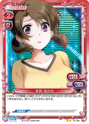 | このカードが登場した場合、EXデッキから「光井 ほのか」または「北山 雫」1枚を抜き出し、表にしてから手札に加える。 | ||