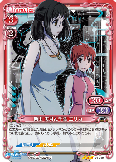 | 〔コンビ〕このカードが登場した場合、EXデッキからこのカードと同じ名称のキャラ2枚を抜き出し、表にしてから手札に加えることができる。 | ||