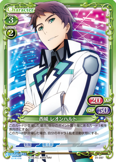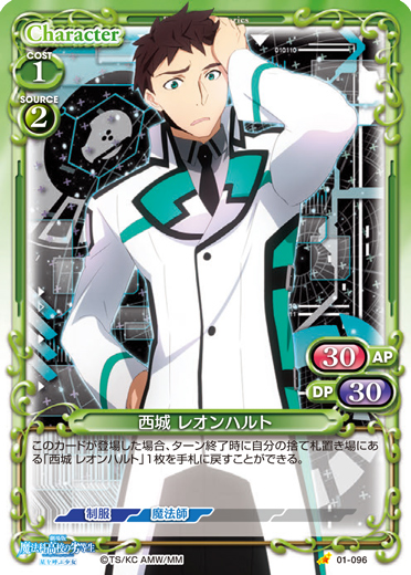 | このカードが登場した場合、ターン終了時に自分の捨て札置き場にある「西城 レオンハルト」1枚を手札に戻すことができる。 | ||