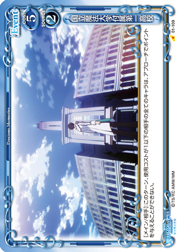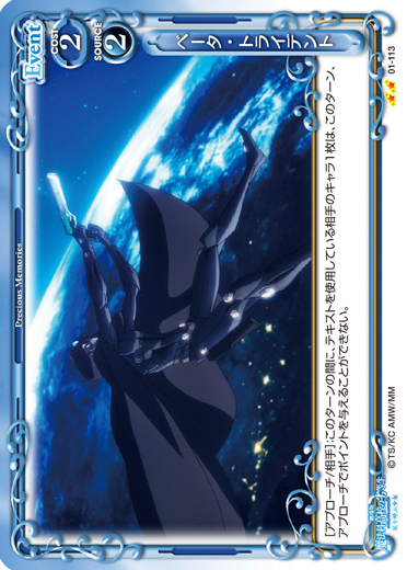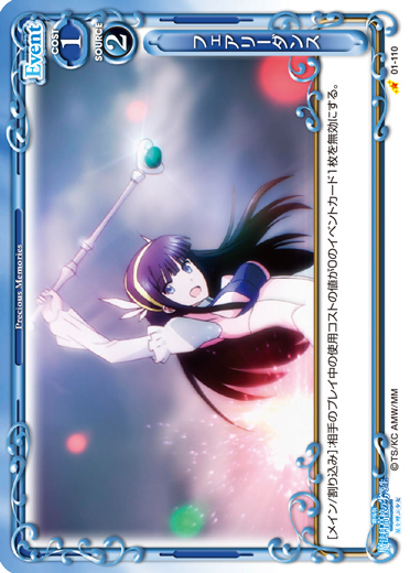 | [メイン/割り込み]:相手のプレイ中の使用コストの値が0のイベントカード1枚を無効にする。 | ||