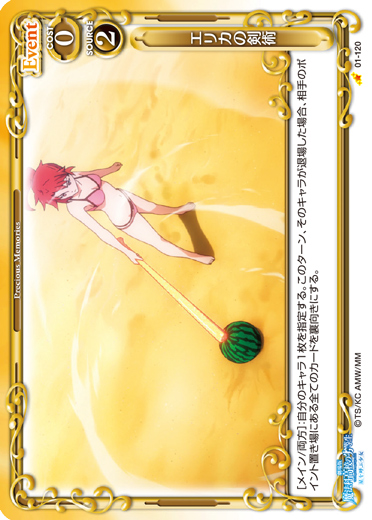 | [メイン/両方]:自分のキャラ1枚を指定する。このターン、そのキャラが退場した場合、相手のポイント置き場にある全てのカードを裏向きにする。 | ||