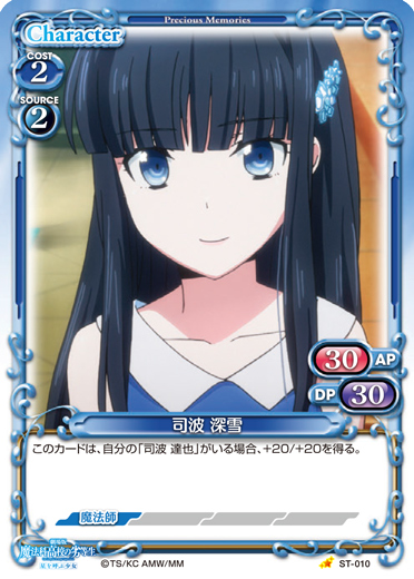 | このカードは、自分の「司波 達也」がいる場合、+20/+20を得る。 | ||