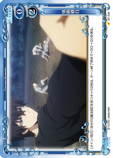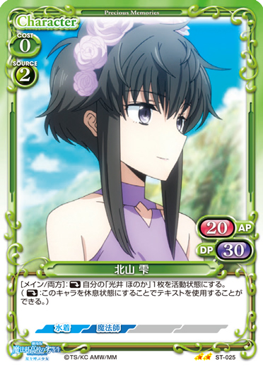 | [メイン/両方]:自分の【魔法師】を持つキャラ2枚は、ターン終了時まで+20/+20を得る。 | ||