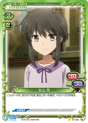| このカードは、自分の「司波 達也」がいる場合、+20/+20を得る。 | ||