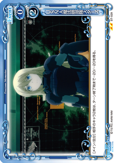 | [メイン/自分]:相手のキャラ2枚は、ターン終了時まで-20/-20を得る。 | ||