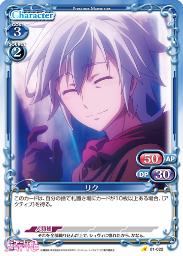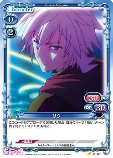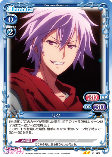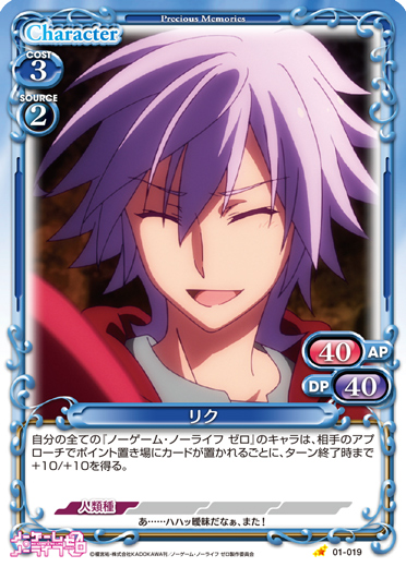 | 自分の全ての『ノーゲーム・ノーライフ ゼロ』のキャラは、相手のアプローチでポイント置き場にカードが置かれるごとに、ターン終了時まで+10/+10を得る。 | ||
