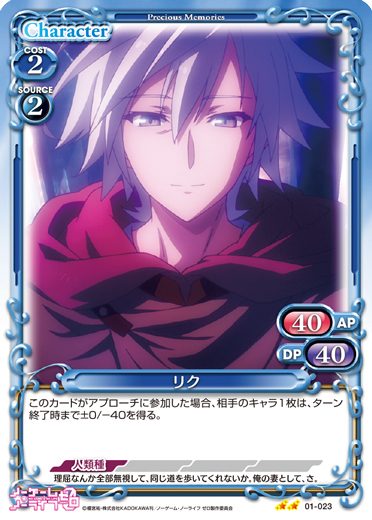 | このカードがアプローチに参加した場合、相手のキャラ1枚は、ターン終了時まで±0/-40を得る。 | ||