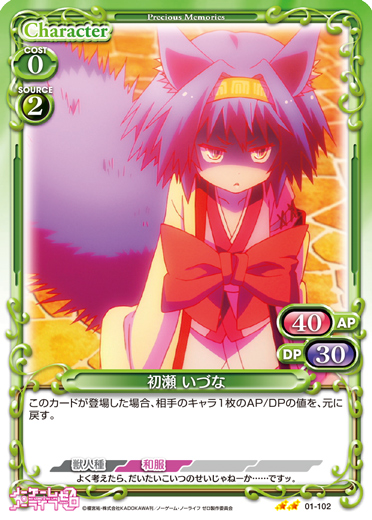 | このカードが登場した場合、相手のキャラ1枚のAP/DPの値を、元に戻す。 | ||