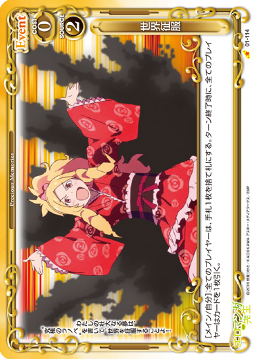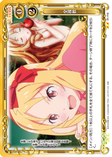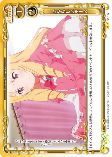 | [メイン/割り込み]:相手のプレイ中の使用コストの値が0のイベントカード1枚を無効にする。 | ||
