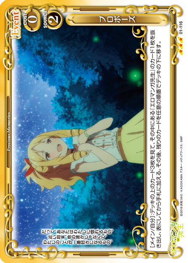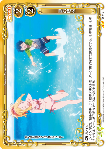 | [アプローチ/両方]:自分の【ラノベ作家】を持つキャラ1枚は、ターン終了時まで+10/+10を得る。その場合、ターン終了時にカードを1枚引く。 | ||