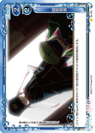 | [メイン/割り込み]:相手のキャラ1枚の使用型テキストの使用を無効にする。 | ||