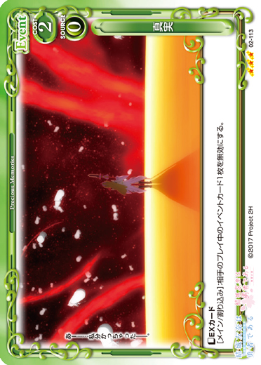 | 〔EXカード〕[メイン/割り込み]:相手のプレイ中のイベントカード1枚を無効にする。 | ||