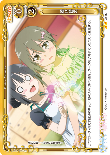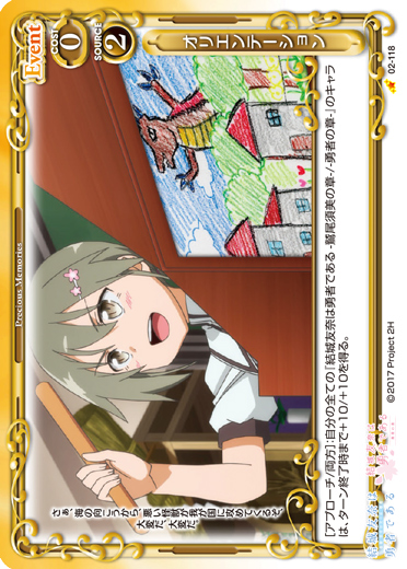 | [アプローチ/両方]:自分の全ての『結城友奈は勇者である -鷲尾須美の章-/-勇者の章-』のキャラは、ターン終了時まで+10/+10を得る。 | ||
