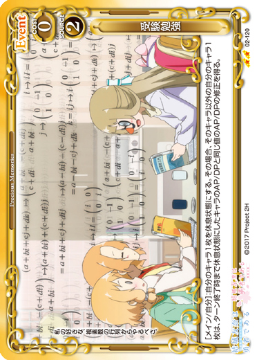 | [アプローチ/両方]:自分のキャラ1枚のAP/DPの値を、ターン終了時まで50/50に変更する。 | ||