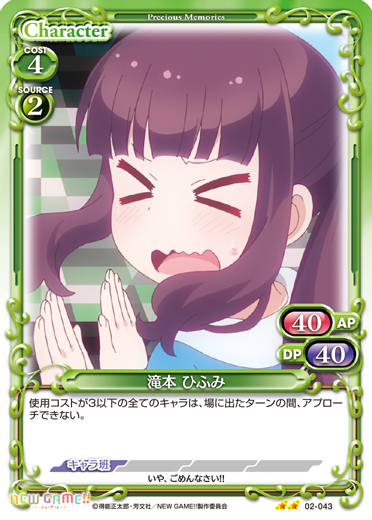 | 使用コストが3以下の全てのキャラは、場に出たターンの間、アプローチできない。 | ||