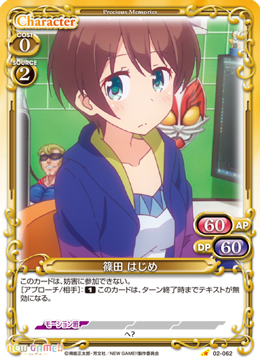 | このカードは、自分のポイント置き場に使用コストが4のカードがある場合、自分のメインフェイズ以外でも登場できる。 | ||