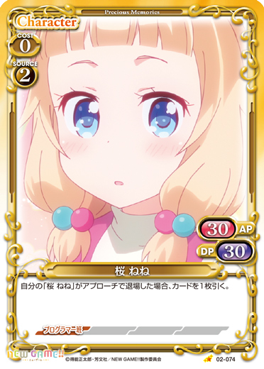 | 自分の「桜 ねね」がアプローチで退場した場合、カードを1枚引く。 | ||