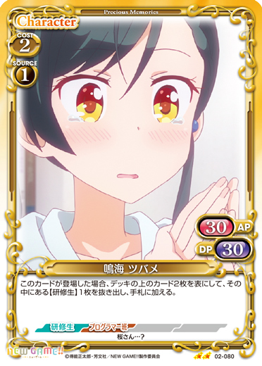 | このカードが登場した場合、デッキの上のカード2枚を表にして、その中にある【研修生】1枚を抜き出し、手札に加える。 | ||