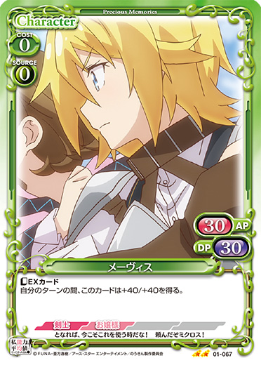 | 〔EXカード〕自分のターンの間、このカードは+40/+40を得る。 | ||