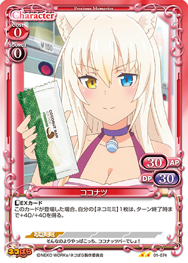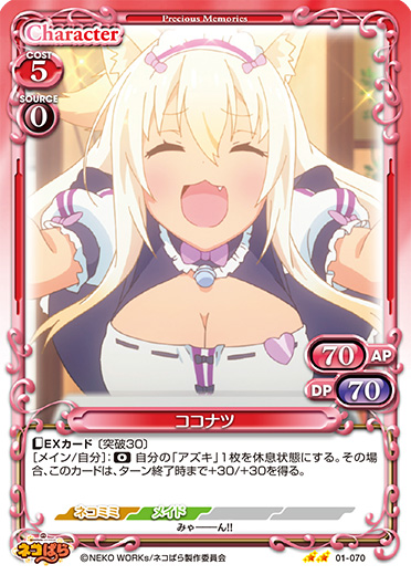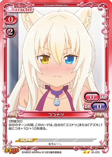 | 〔突破30〕 自分のターンの間、このカードは、自分の「ココナツ」または「アズキ」1枚につき+10/+10を得る。 | ||