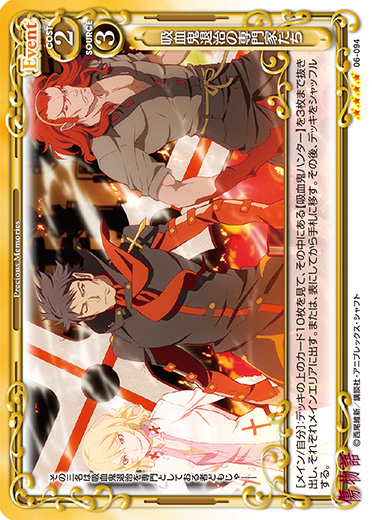 [メイン/自分]:デッキの上のカード10枚を見て、その中にある【吸血鬼ハンター】を3枚まで抜き出し、それぞれメインエリアに出す。または、表にしてから手札に移す。その後、デッキをシャッフルする。