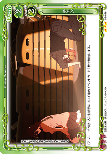 [メイン/割り込み]:相手のプレイ中のイベントカード1枚を無効にする。