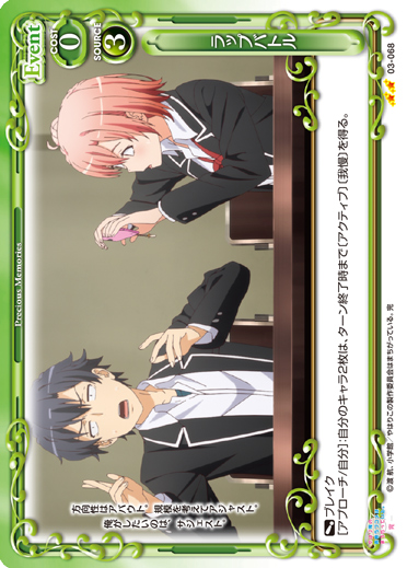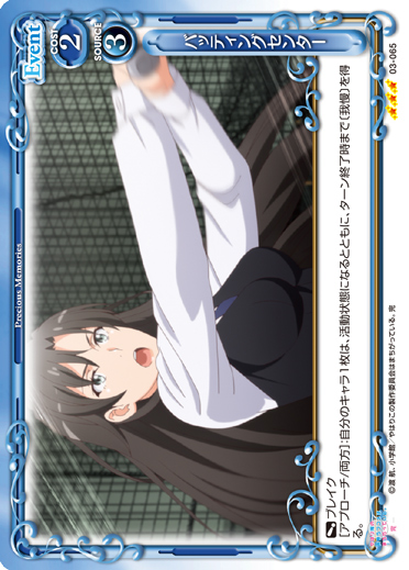 | 〔ブレイク〕[アプローチ/自分]:自分のキャラ2枚は、ターン終了時まで〔アクティブ〕〔我慢〕を得る。 | ||