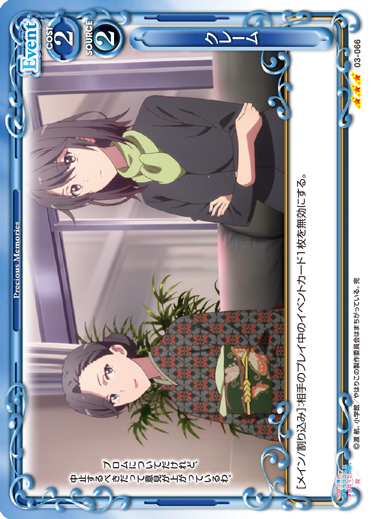 | [メイン/割り込み]:相手のプレイ中のイベントカード1枚を無効にする。 | ||