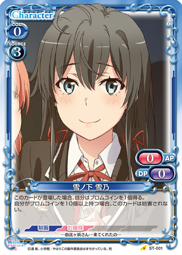 | このカードが登場した場合、自分はプロムコインを1個得る。自分がプロムコインを10個以上持つ場合、このカードは妨害されない。 | ||