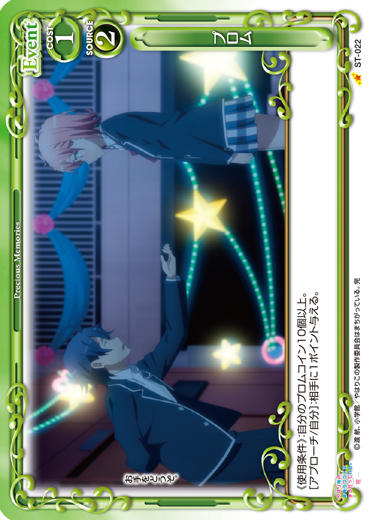 | 《使用条件》:自分のプロムコイン10個以上。[アプローチ/自分]:相手に1ポイント与える。 | ||