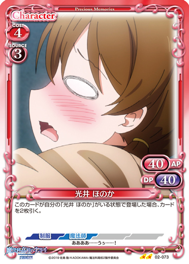 | このカードが自分の「光井 ほのか」がいる状態で登場した場合、カードを2枚引く。 | ||