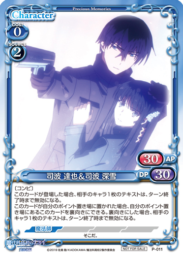 | このカードは、自分の「司波 深雪」がいる場合、+20/+20を得るとともに、自分のターン終了時に活動状態になる。 | ||