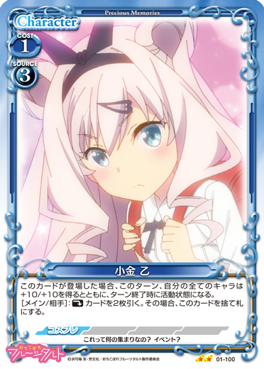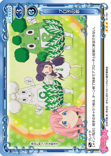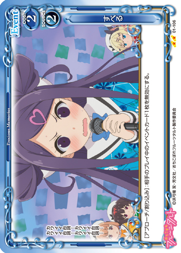 | 〔ブレイク〕[メイン/両方]:相手のキャラ1枚は、ターン終了時までアプローチと妨害に参加できない。 | ||