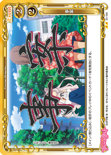 | [メイン/割り込み]:相手のプレイ中のイベントカード1枚を無効にする。 | ||