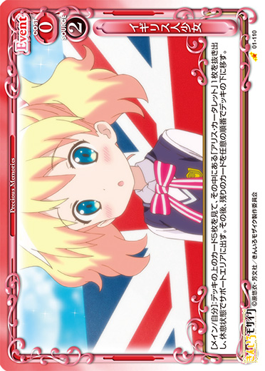 | [メイン/自分]:デッキの上のカード5枚を見て、その中にある「アリス・カータレット」1枚を抜き出し、休息状態でサポートエリアに出す。その後、残りのカードを任意の順番でデッキの下に移す。 | ||