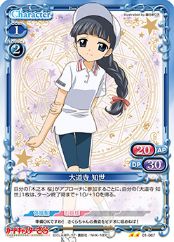 | [メイン/自分]:《休》自分の「大道寺 知世」1枚は、自分の「木之本 桜」1枚につき、ターン終了時まで+10/+10を得る。 | ||