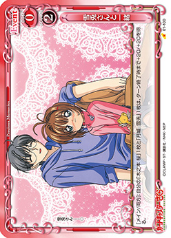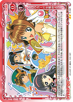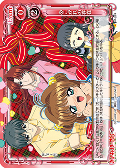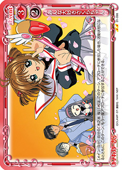 | [メイン/自分]:自分の「木之本 桜」1枚を休息状態にする。その場合、デッキの上のカード5枚を見て、その中にある「木之本 桜」2枚を抜き出し、表にしてから手札に加える。その後、残りのカードを任意の順番でデッキの下に移す。 | ||