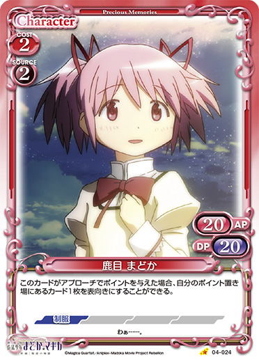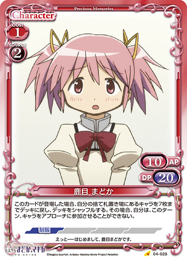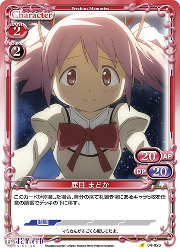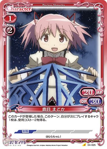| このカードが登場した場合、このターン、自分が次にプレイするキャラ1枚は、使用コスト-2を得る。 | ||