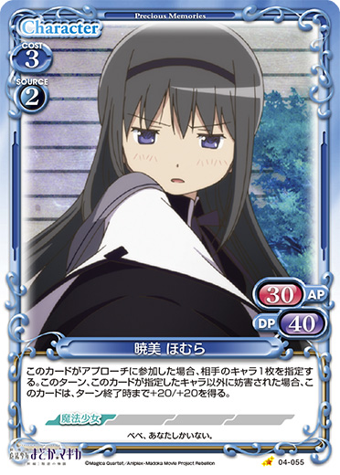 | このカードが登場した場合、全てのキャラは、ターン終了時まで-10/-10を得る。 | ||