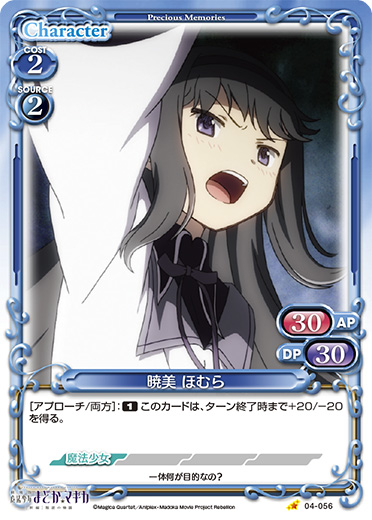 | このカードがアプローチに参加した場合、相手のキャラ1枚を指定する。このターン、このカードが指定したキャラ以外に妨害された場合、このカードは、ターン終了時まで+20/+20を得る。 | ||