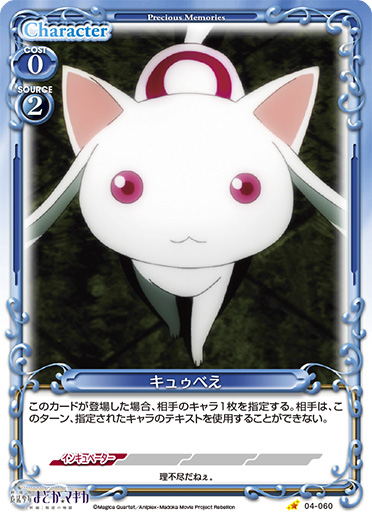 | このカードが登場した場合、相手のキャラ1枚を指定する。相手は、このターン、指定されたキャラのテキストを使用することができない。 | ||