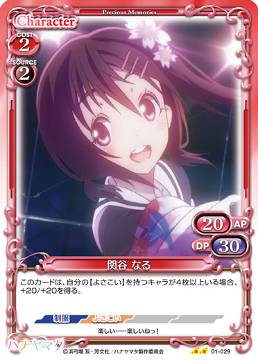 | このカードは、自分の【よさこい】を持つキャラが4枚以上いる場合、+20/+20を得る。 | ||