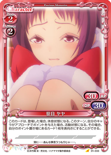 | このカードが登場した場合、自分の『ハナヤマタ』のキャラ1枚をメインエリアに移すことができる。 | ||