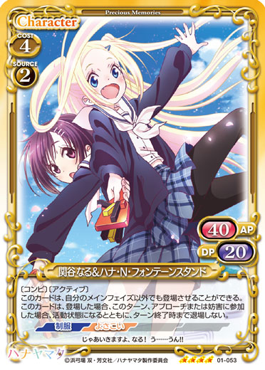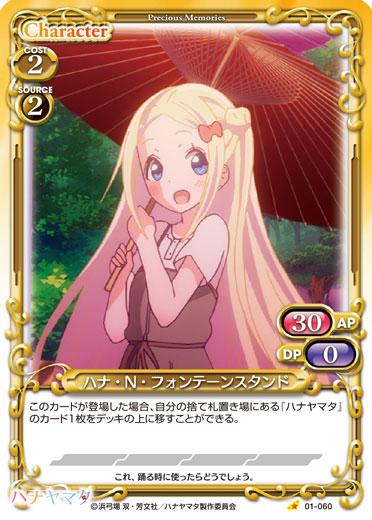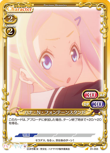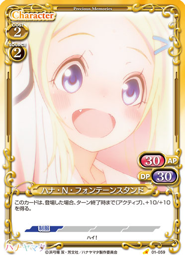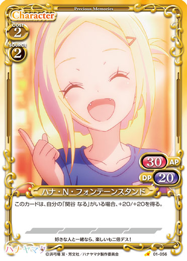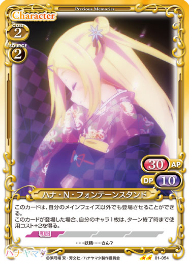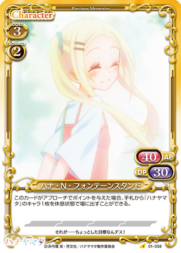 | このカードがアプローチでポイントを与えた場合、手札から『ハナヤマタ』のキャラ1枚を休息状態で場に出すことができる。 | ||